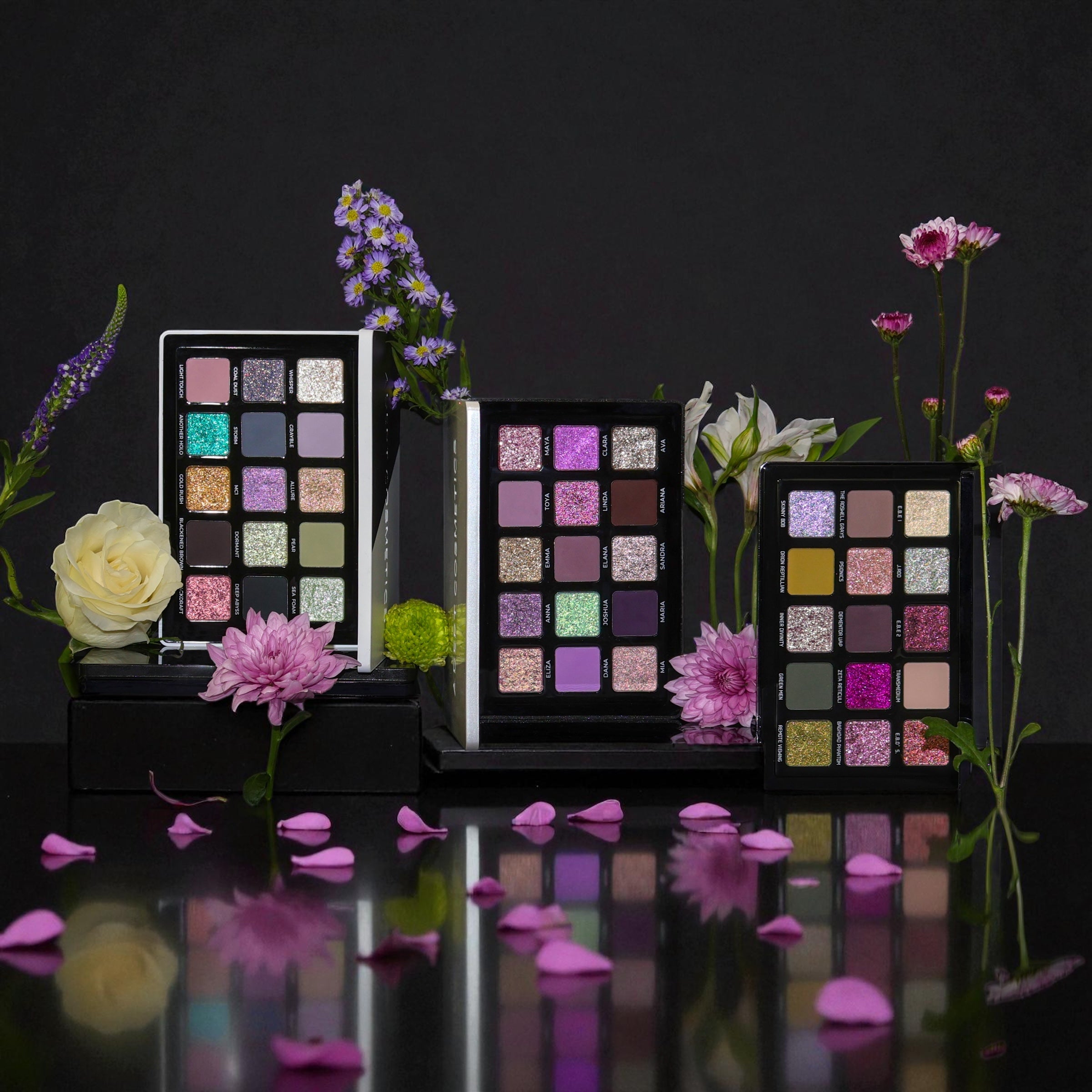 - This palette contains extremely sparkly, very high pearl shimmers, including two multichromes, two iridescent multichromes and two duochromes -all of which consist of various textures. There are 5 matte shades included to compliment your look. This new formula is thinner and more elegant than the original palette. (A lot of makeup artists and customers disliked the thickness of the old formula)